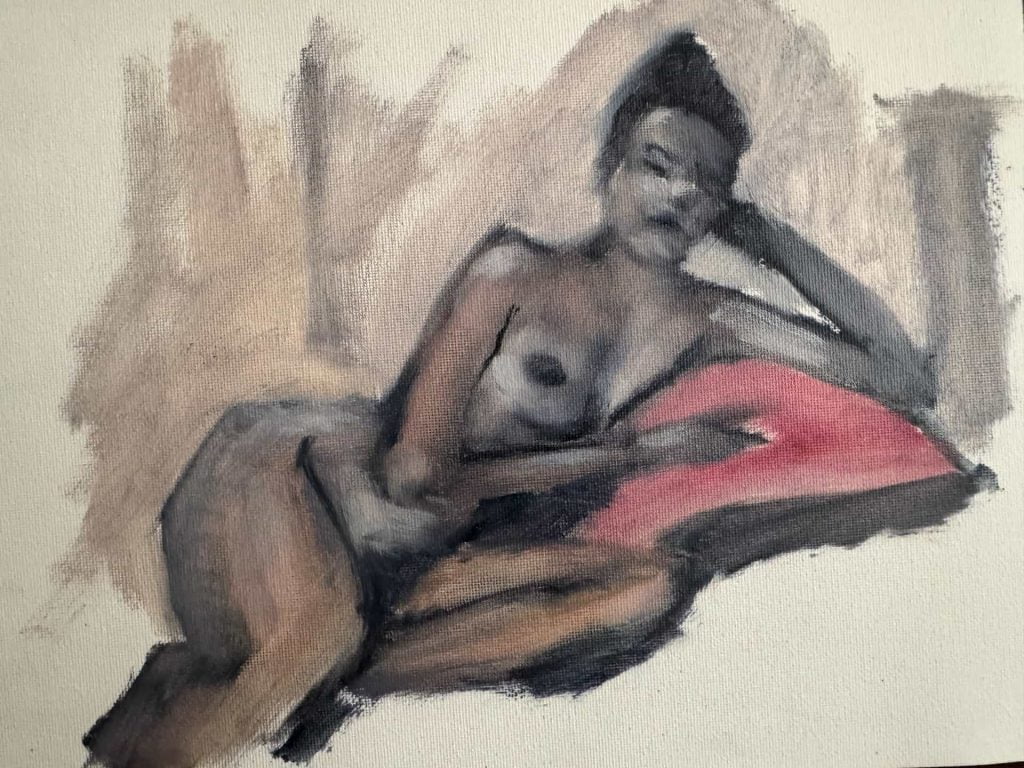 This week I attended the life drawing group again and took some oil paints as well as drawing equipment. Time was a pressure again but this 20 minute pose worked out quite well.